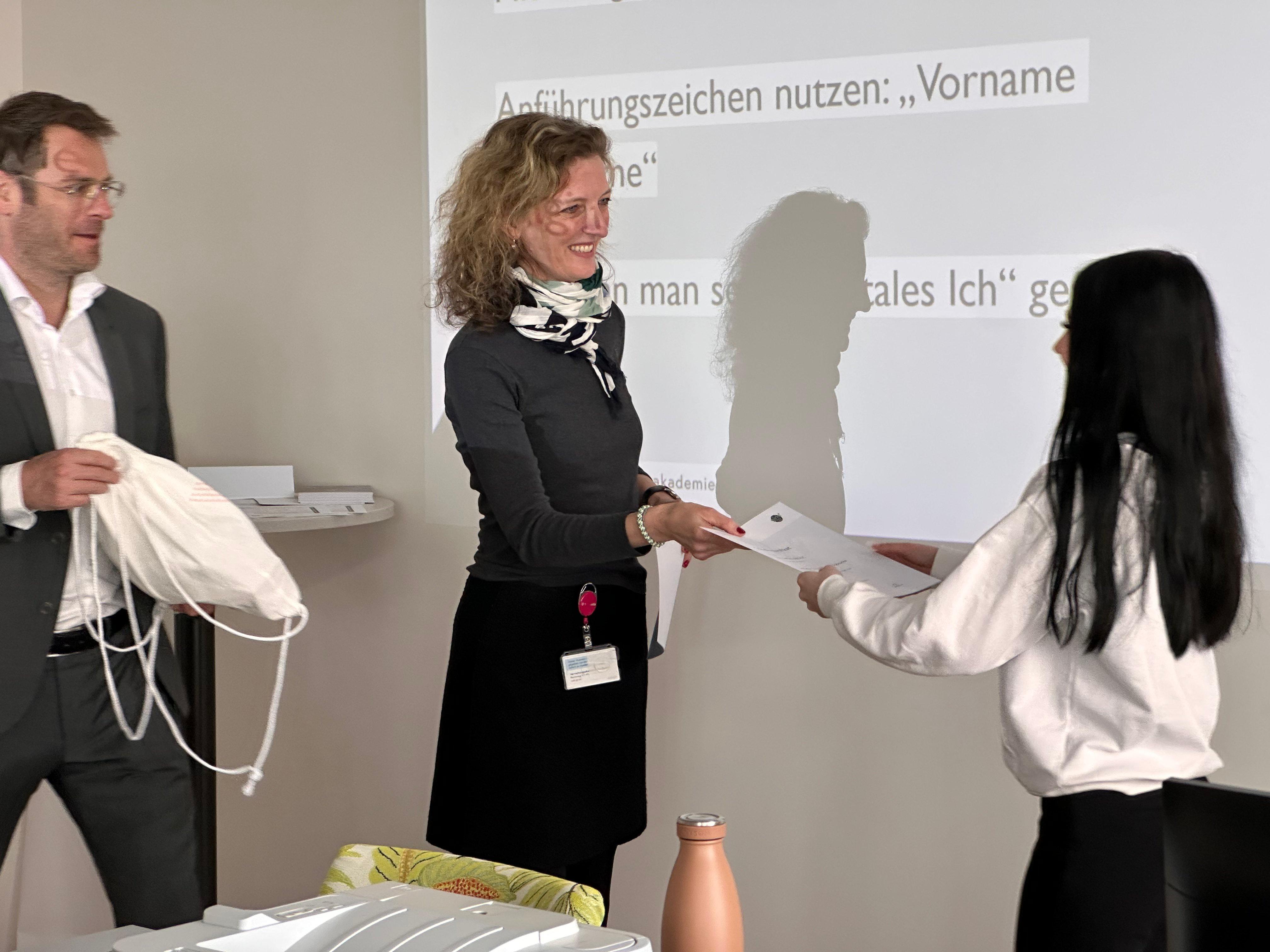 Zum Abschluss verabschiedeten Sktionschef Andreas Buchta-Kadanka und Abteilungsleiterin Petra Dietrich die Schülerinnen mit ermutigenden Worten und überreichten ihnen Teilnahmezertifikate der Verwaltungsakademie, die sie bei zukünftigen Bewerbungen nutzen können.